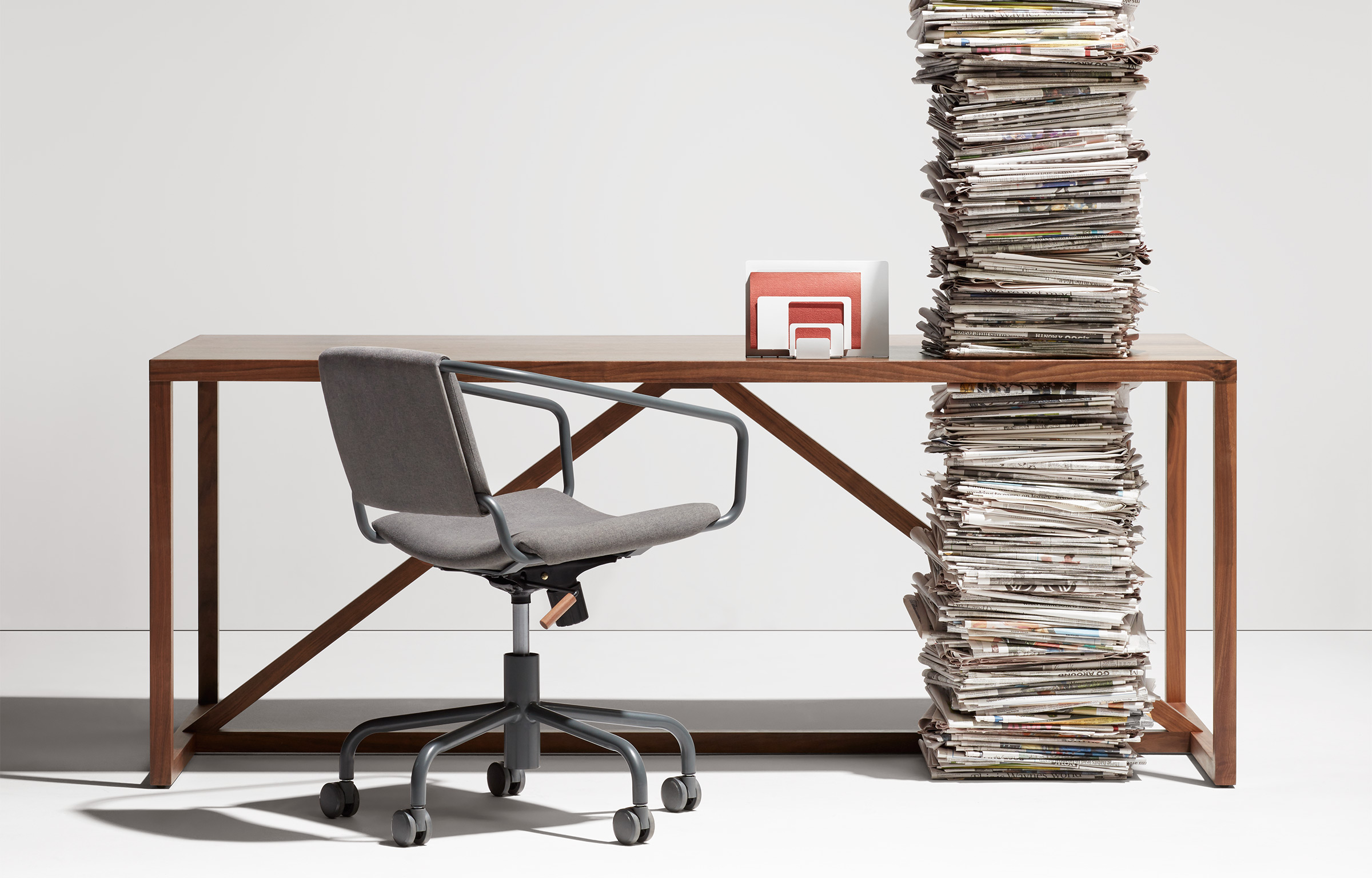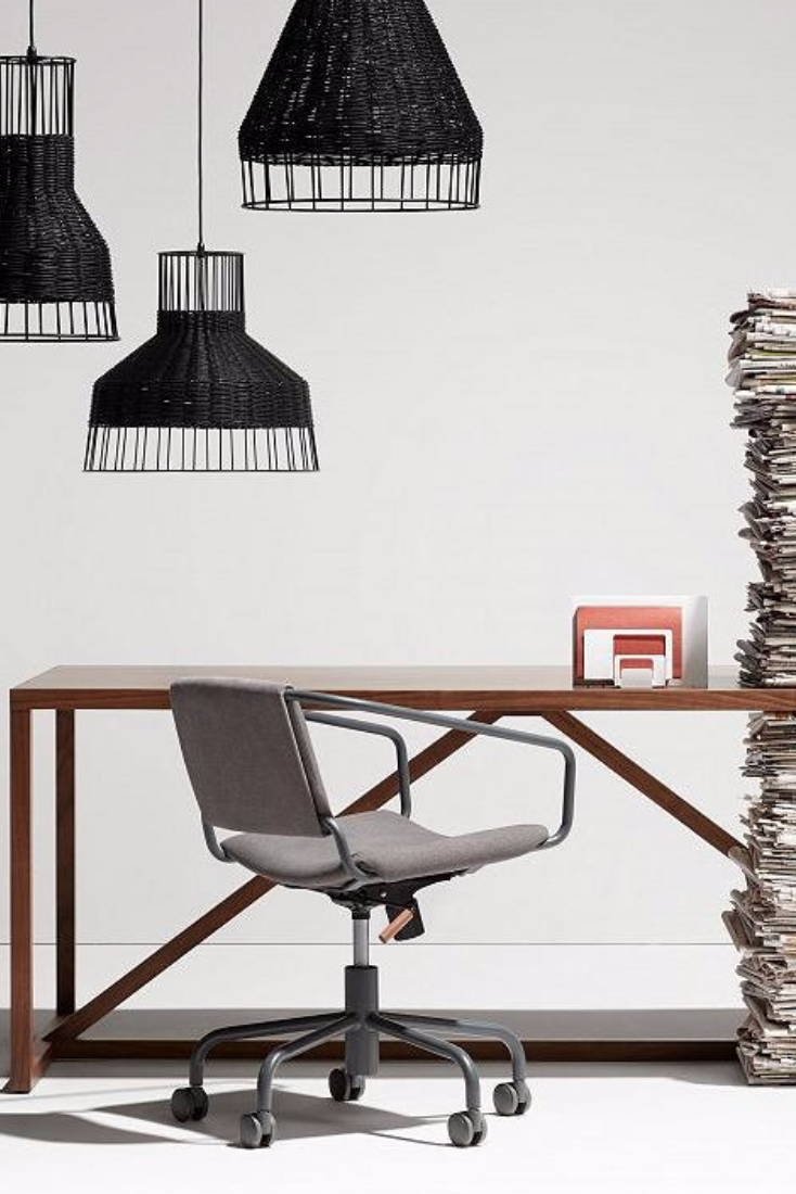 - Functional work space-friendly features include adjustable height and tilt, and casters for mobility