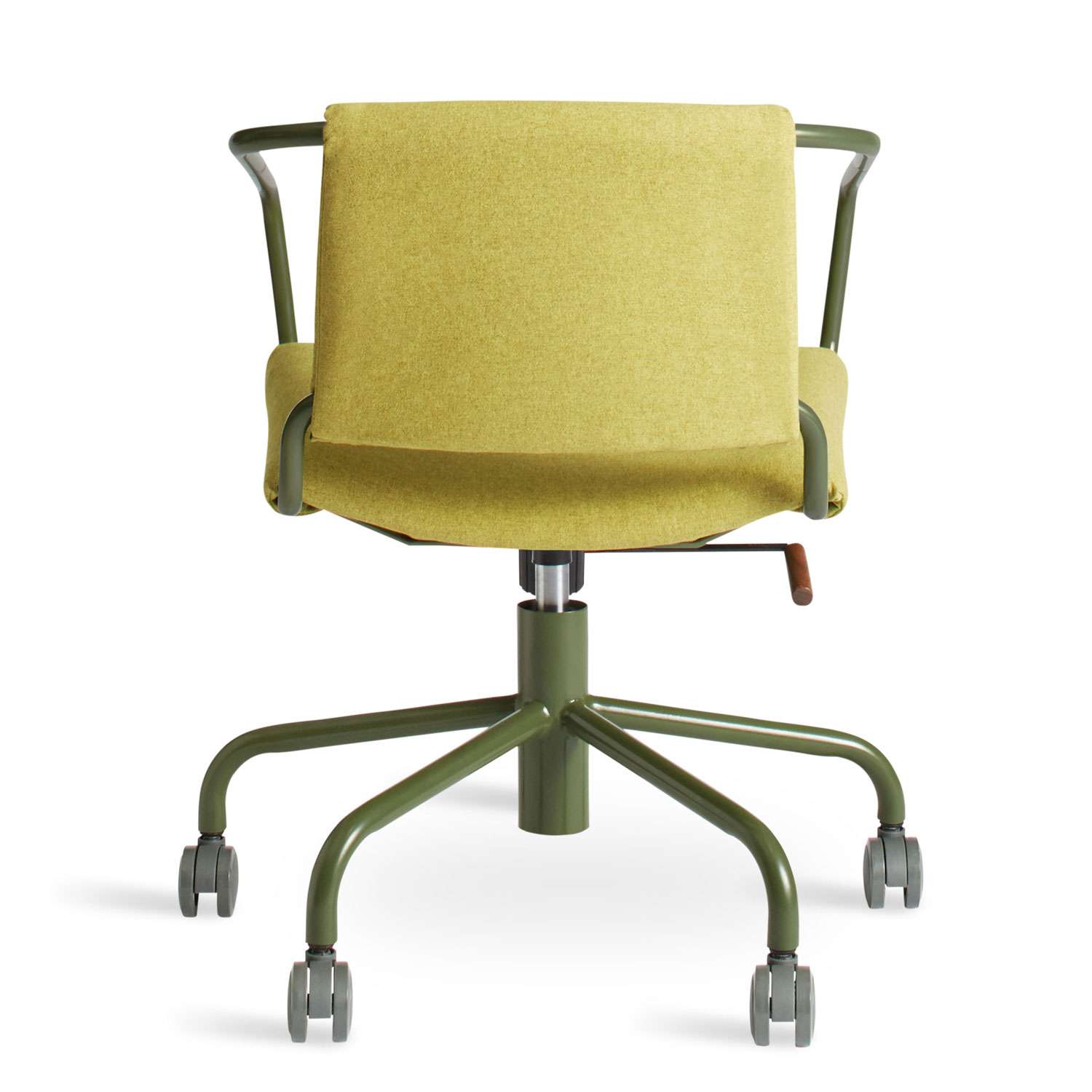 Swivel your day away or create new productivity-crushing habits in comfort. A well-padded seat and back is upholstered to coordinate with the powder-coated steel arms and base. Height and tilt tension are adjustable.