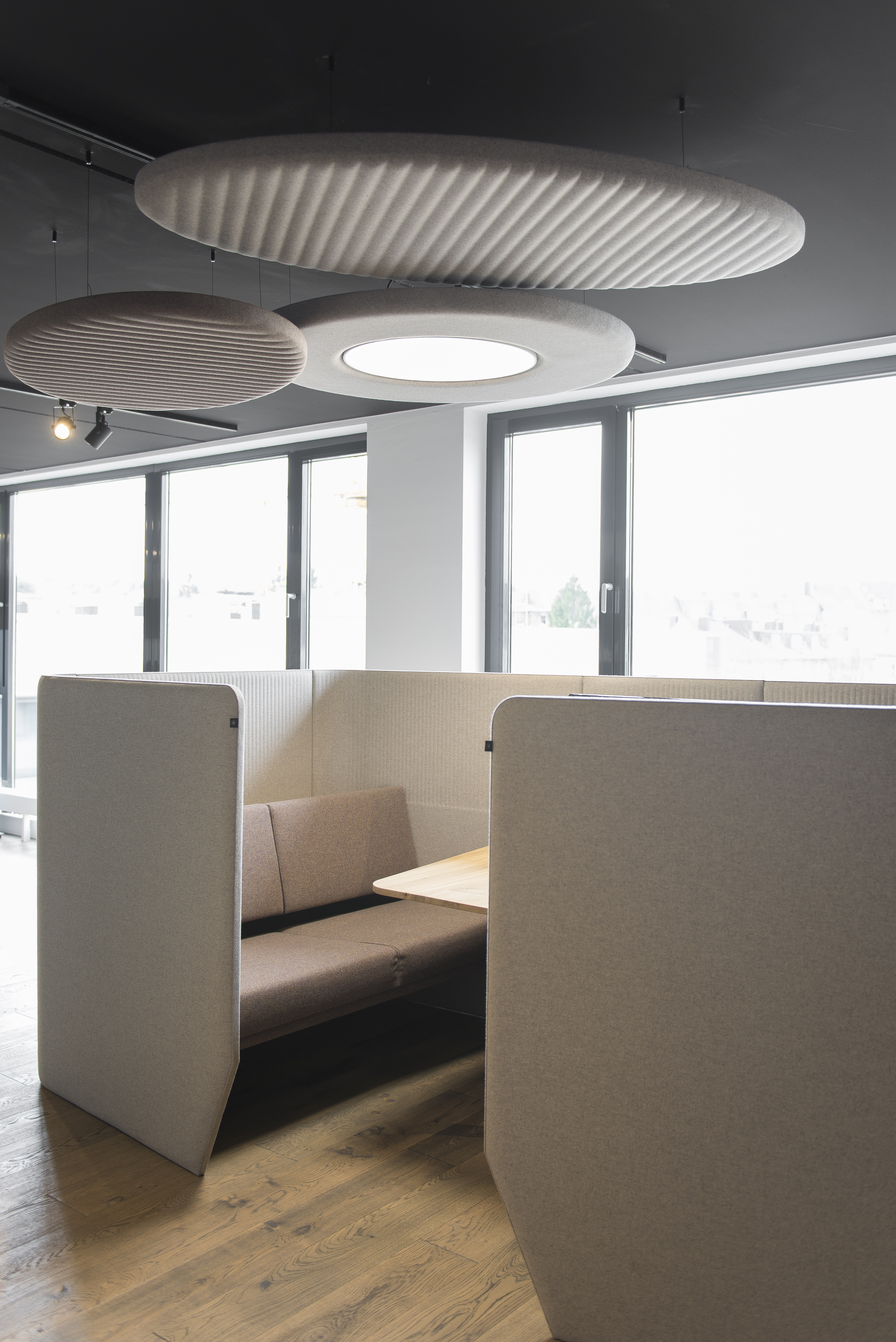 By leaning forward or back, a guest in BuzziHub Open can choose to engage or disengage with the office environment.